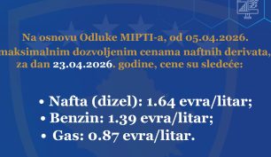 Cena dizela na Kosovu danas iznosi 1,64 evra što je za cent jeftinije nego juče, saopštilo je Ministarstvo trgovine,...