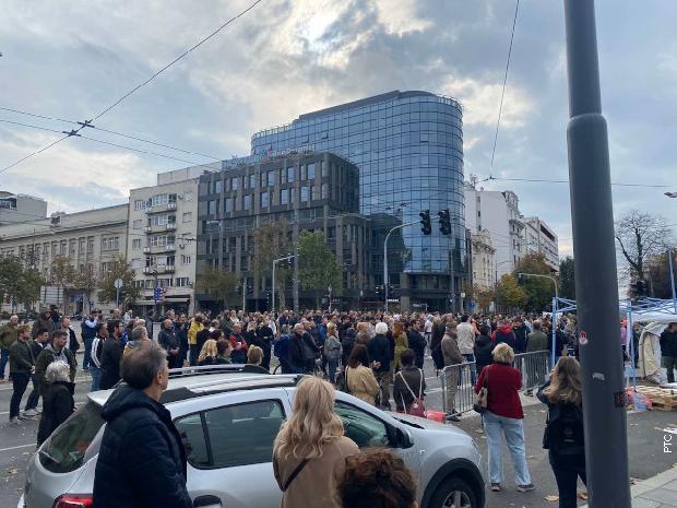 Na platou ispred Skupštine Srbije nalazi se grupa građana koji se protive blokadama, a između dve grupe raspoređena je policija, dok saobraćajna policija preusmerava saobraćaj na prohodne ulice. Na uglu Takovske ulice i Bulevara kralja Aleksandra nalazi se šator u kome je Hrka, čiji je sin stradao u padu nadstrešnice na Železničkoj stanici u Novom Sadu, a koja je štrajk glađu počela juče.