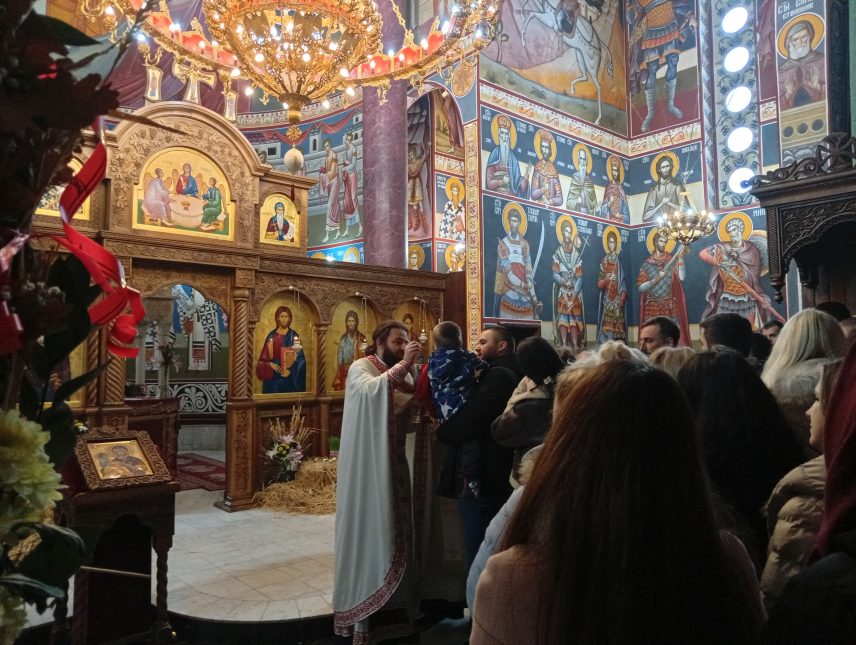 Povodom najradosnijeg hrišćanskog praznika Božića, jutros je u hramu Svetog Velikomučenika Dimitrija u Kosovskoj Mitrovici služena liturgija.
