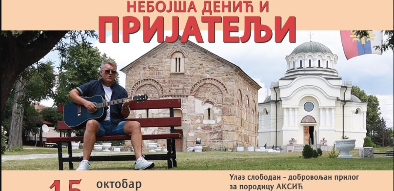 U Domu kulture Gračanica sutra će biti održan humanitarni koncert Nebojše Denića i prijatelja. Koncert se organizuje sa ciljem prikupljanja sredstava za pomoć porodici pokojnog Dejana Aksića iz Dobrotina – samohranoj majci Sanji Nićić Aksić i njenim ćerkama Dejani i Nedi. Nebojša Denić je univerzitetski profesor i doktor tehničkih i ekonomskih nauka. Poznat je po […]
