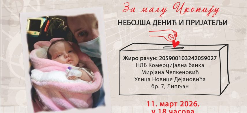 Humanitarni koncert pod nazivom „Nebojša Denić i prijatelji“ biće održan u sredu u Domu kulture u Gračanici sa početkom u 18 časova, sa ciljem prikupljanja pomoći za malu Ikoniju iz Lipljana kojoj je potrebna podrška za lečenje. Ikoniji je u decembru dijagnostikovana leukemija. Od tada se nalazi na lečenju u bolnici u Nišu zajedno sa […]