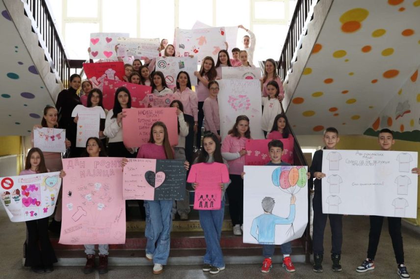 Poslednja nedelja februara u školi protekla je u znaku solidarnosti i empatije. Povodom Dana roze majica, učenici viših razreda pripremili su radionice, glumačke skečeve, literarne i likovne radove, kao i digitalne projekte inspirisane porukom mira.