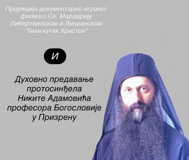 Nakon projekcije, prisutnima će se obratiti protosinđel Nikita Adamović, profesor Bogoslovije u Prizrenu, koji će održati duhovno predavanje. Organizatori ističu da je cilj sabranja da vernicima donese duhovnu korist, radost i uzrastanje tokom Velike četrdesetnice.