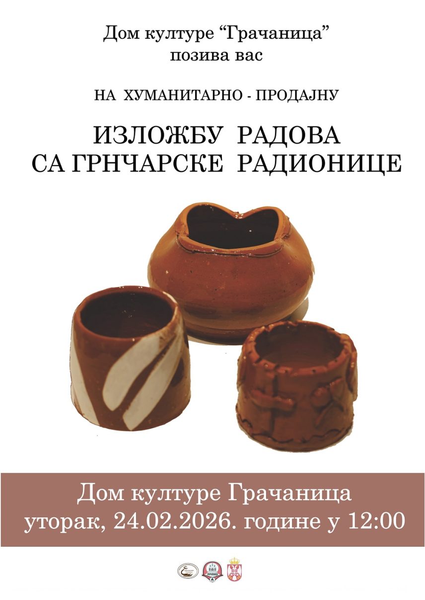 Doma kulture „Gračanica“, u utorak 24, februara, organizuje humanitarnu izložbu radova sa grnčarske radionice za osobe sa invaliditetom i korisnike Socijalne ustanove „Kuća za omladinu“ koja je održana tokom decembra.