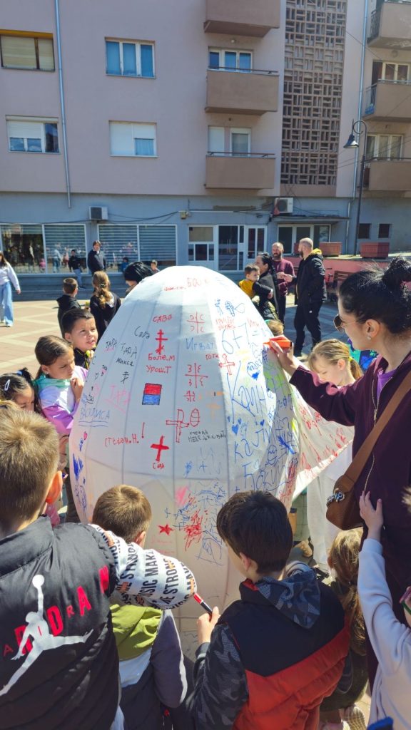 Oko velikog jajeta okupila su se mala, vredna i maštovita dečija srca koja su kroz raznobojne šare, boje i osmehe ostavila svoj jedinstveni trag. Dečija radost, smeh i iskrena sreća učinili su ovaj događaj posebnim, pretvarajući ga u nezaboravan trenutak ispunjen toplinom i zajedništvom.