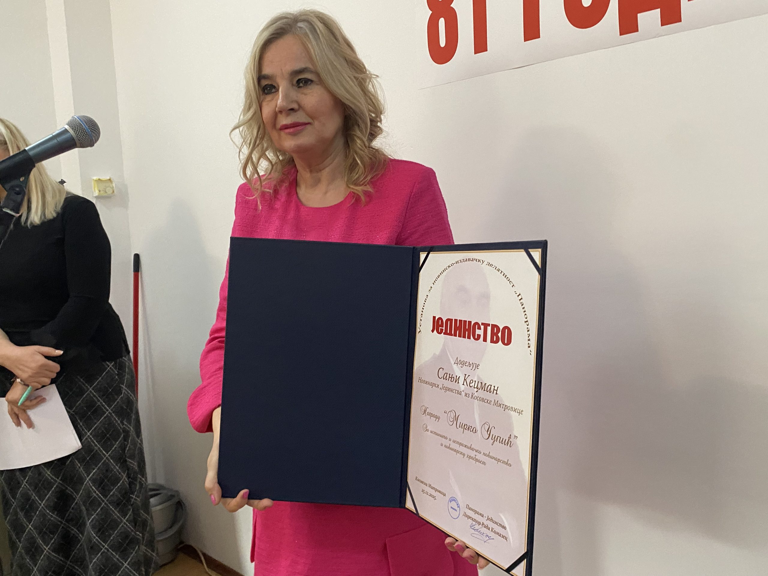 Žiri u sastavu Dragana Zečević, Zoran Vlašković i Sonja Ivković, jednoglasno je odlučio da ovogodišnja nagrada za hrabrost „Mirko Čupić“ pripadne novinarki Jedinstva Sanji Kecman.