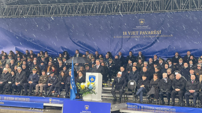 Na svečanoj sednici povodom obeležavanja 18. godišnjice nezavisnosti Kosova, Vjosa Osmani izjavila je da je OVK najveći ideal koji su Albanci gradili kroz vekove. Kurti kaže da optužbe Specijalnog tužilaštva u Hagu za zločine protiv čovečnosti ne stoje, te da je zločine nad albanskim civilima počinila je Miloševića Srbija.