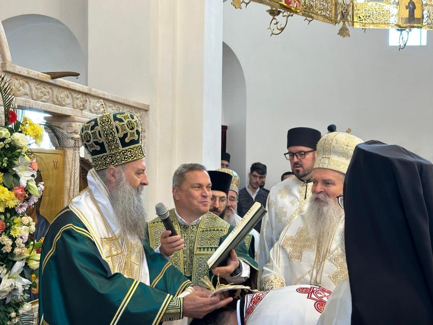 Arhijerejsku liturgiju povodom osvećenja hrama služio je patrijarh Porfirije, zajedno sa arhijerejima SPC.