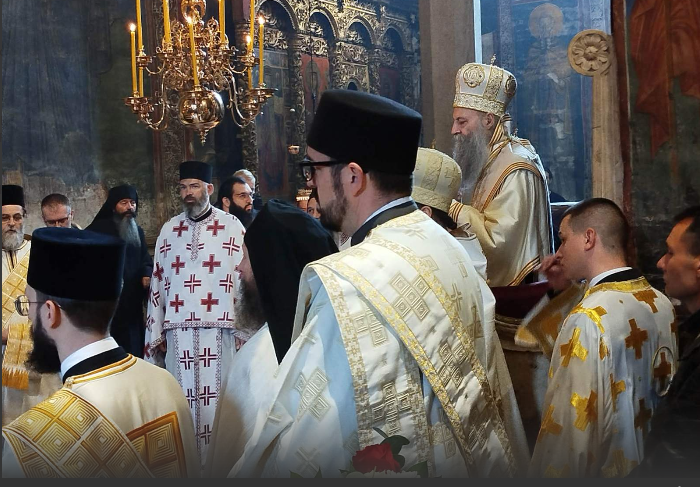 Patrijarh srpski Porfirije služio je na Vaskršnji ponedeljak, u manastiru Visoki Dečani, svetu liturgiju u prisustvu velikog broja vernika.