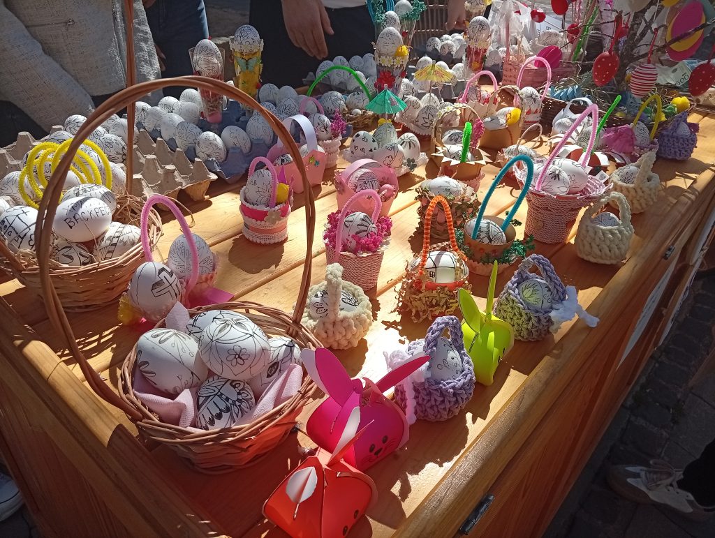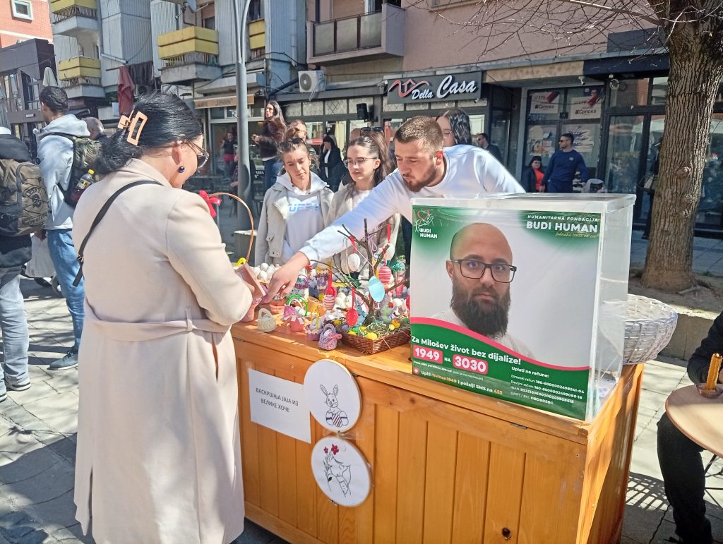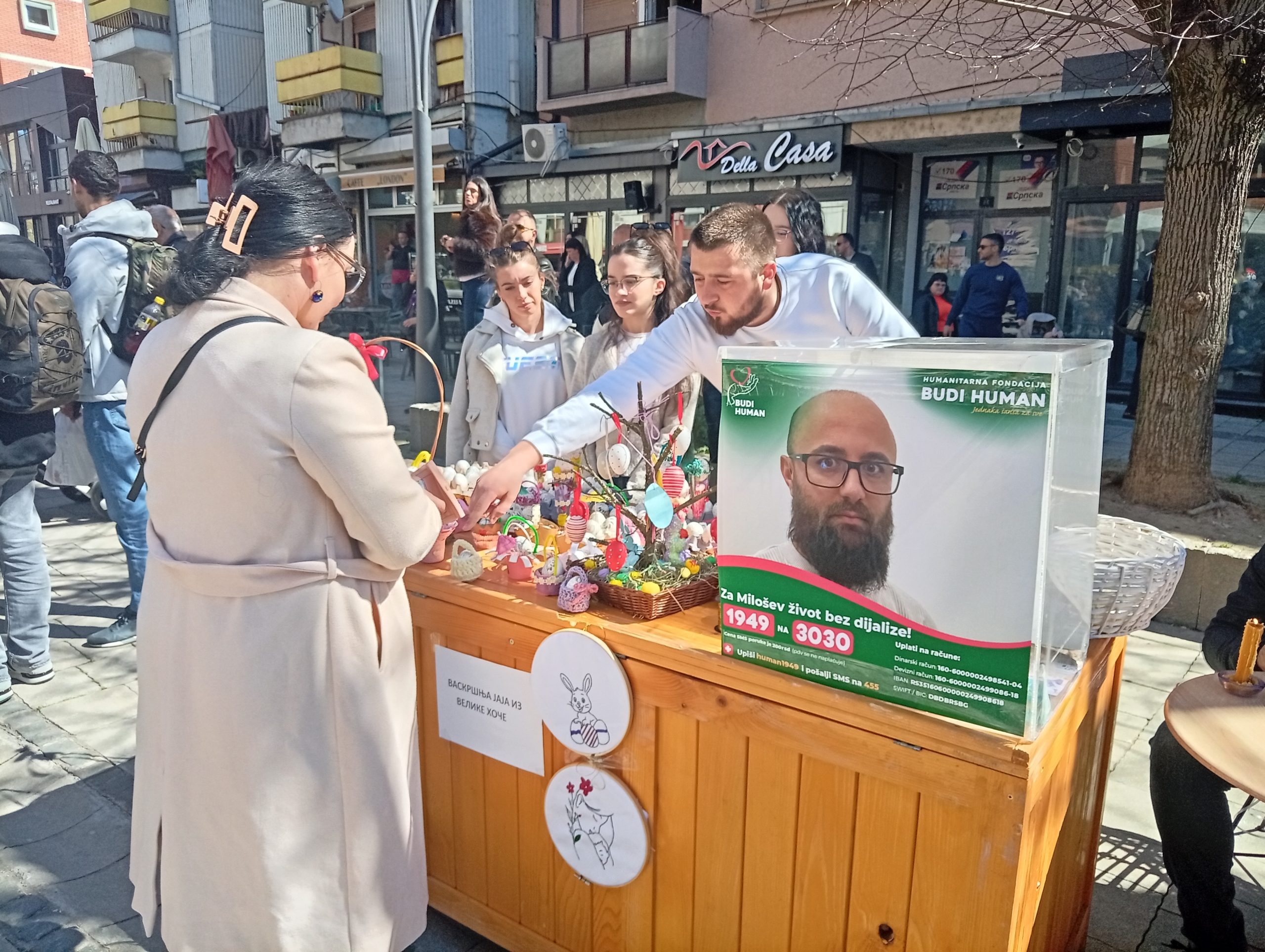 Istovremeno, na šetalištu su bili postavljeni štandovi na kojima su građani mogli da kupe našarana jaja i druge proizvode sa vaskršnjim motivima. Nije bilo formiranih cena, već su građani u zamenu za robu, ostavljali humanitarni prilog za lečenje naših obolelih sugrađana.
