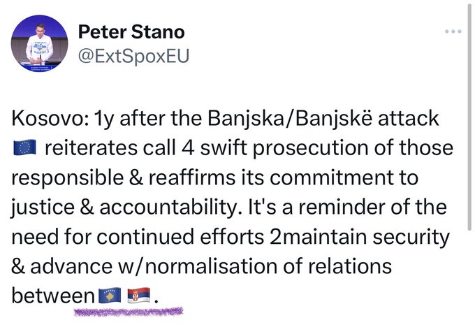 Petković je tim povodom na društvenoj mreži X napisao: ” Ko je ovlastio portparola Evropske unije Petera Stana da krši statusnu neutralnost EU i da priznaje Kosovo?”