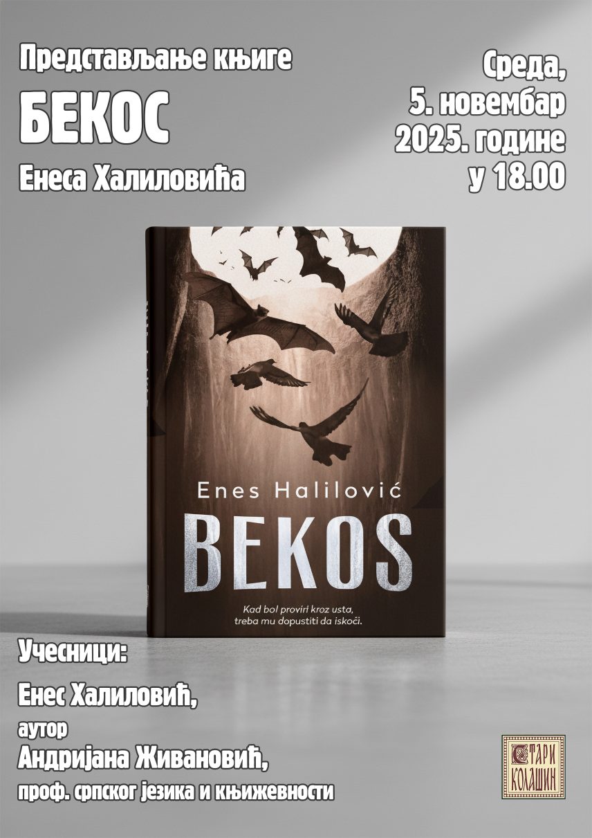 Dom kulture “Stari Kolašin” u sredu ( 5. novembar) u 18 časova organizuje predstavljanje knjige “Bekos” autora Enesa Halilovića.
