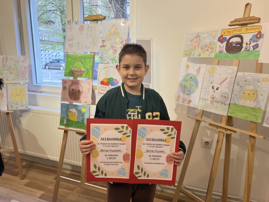 Nagradu za najlepše našarano jaje, u kategoriji predškolskih ustanova, dobila je Simona Lekić. Drugo mesto pripalo je Nini Božović, a treće Anđeliji Marković.