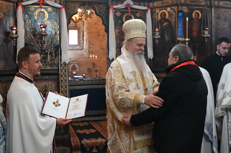 Nakon svete liturgije, mitropolit je uručio visoko odlikovanje Srpske pravoslavne crkve, “Orden Svetog kneza Lazara”, kompozitoru i tekstopiscu iz Orahovca, Gavrilu Kujundžiću.