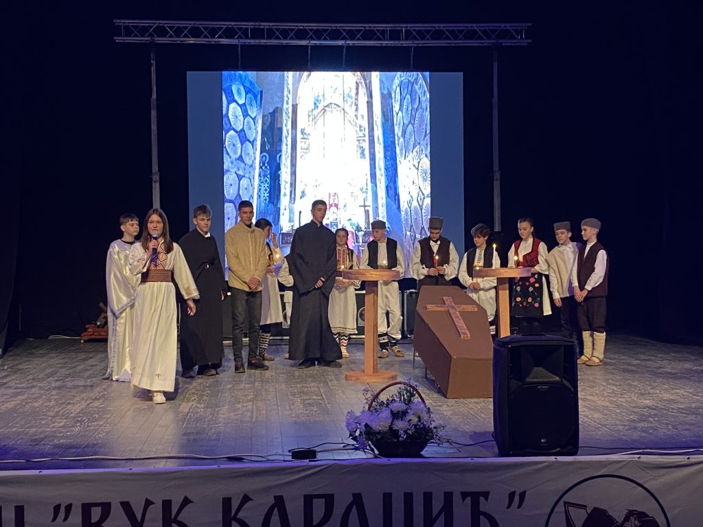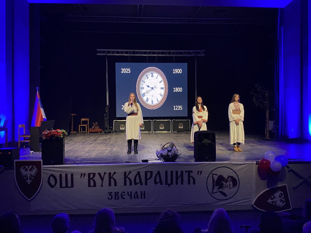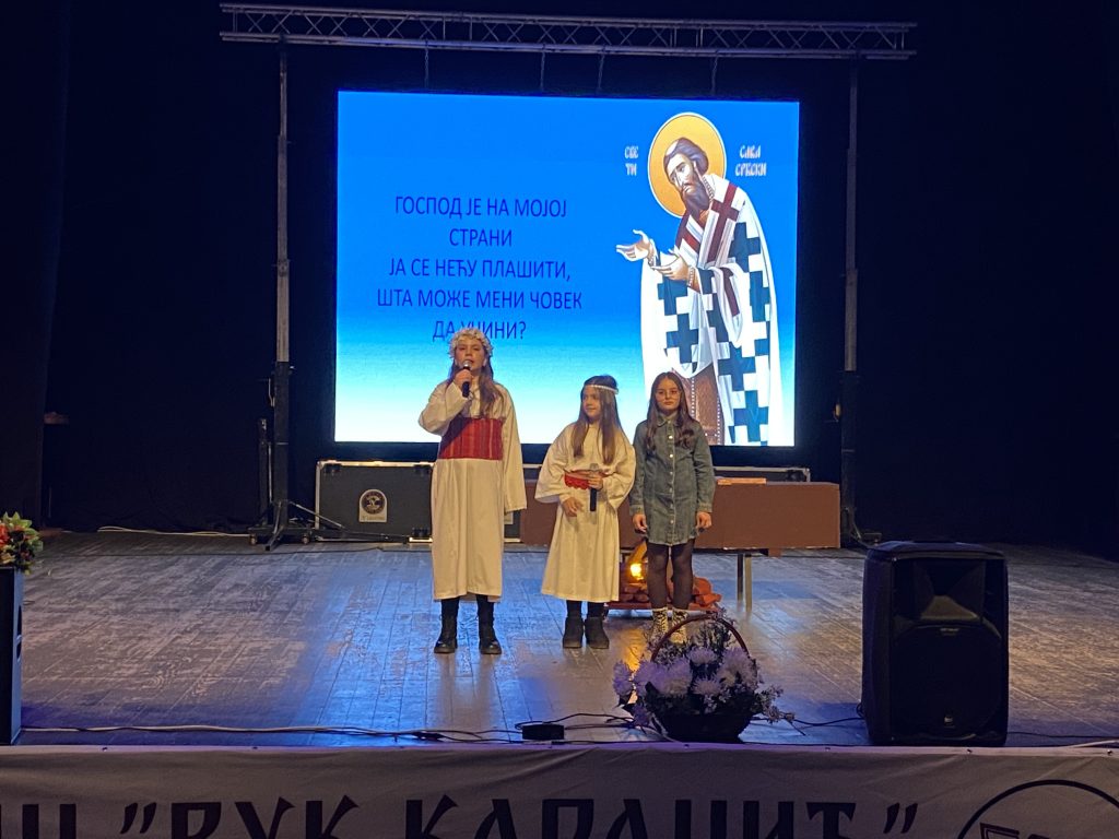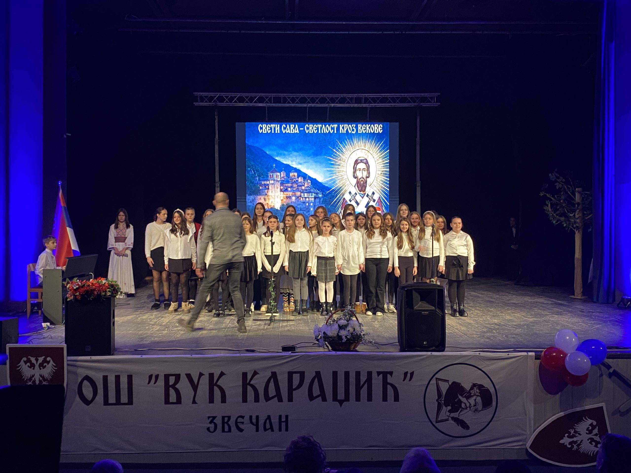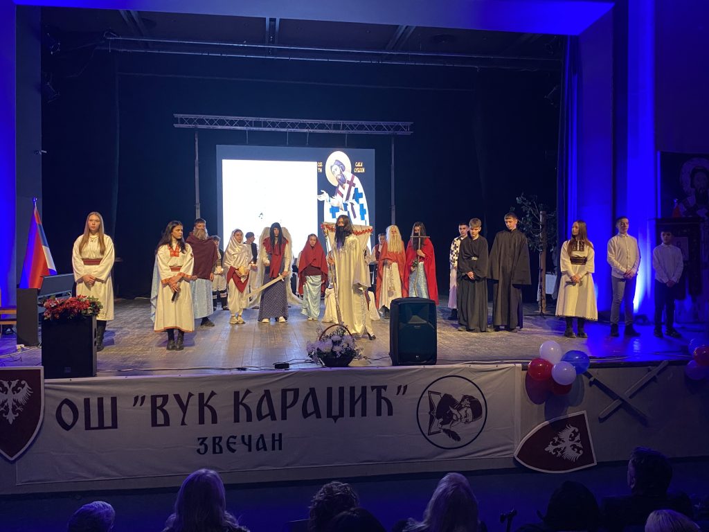 Učenici OŠ „Vuk Karadžić“ iz Zvečana tematski su obradili i prikazali istorijske događaje, od trenutka spaljivanja moštiju Svetog Save pa sve do savremenog doba, osvetljavajući brojna iskušenja i stradanja kroz koja je prolazio srpski narod.