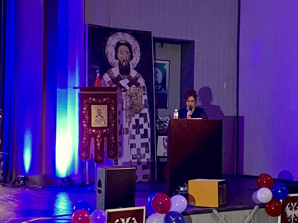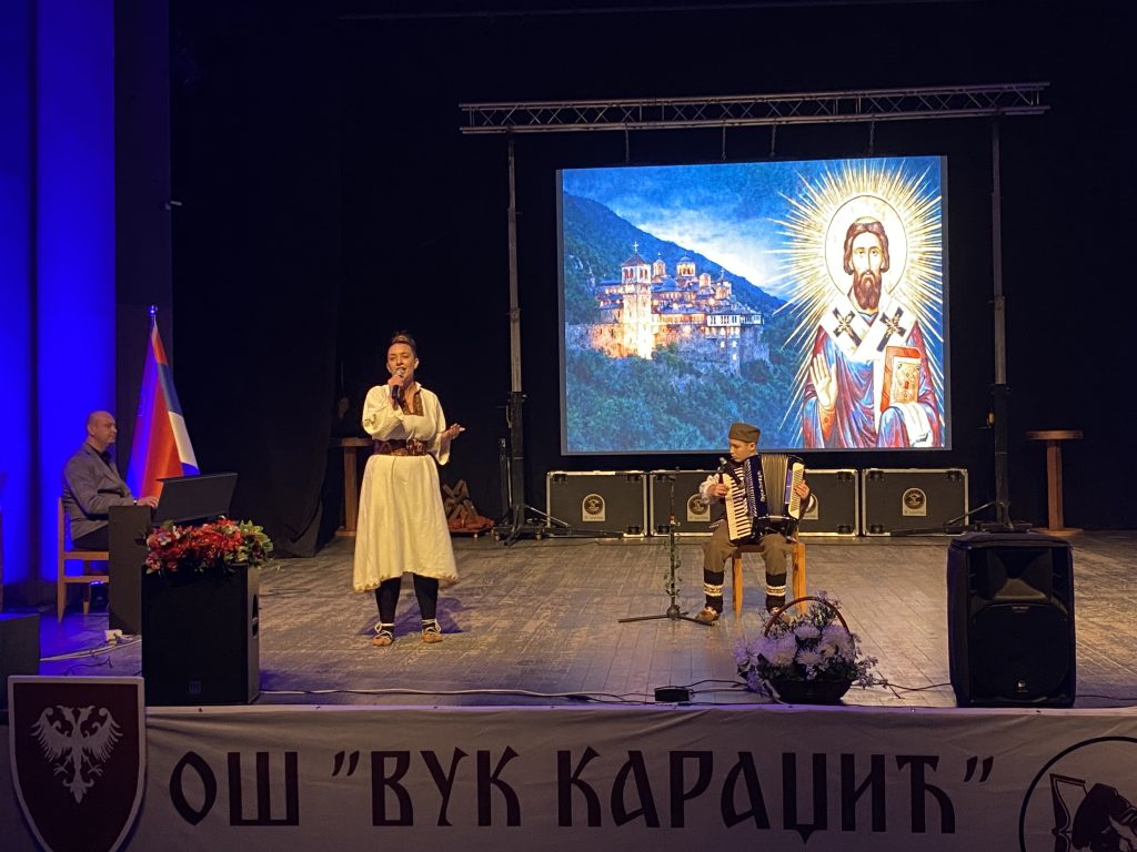Direktorica škole Slađana Fićović pozdravila je prisutne i naglasila da je lik Svetog Save duboko utkan u srpsku istoriju i identitet, te da se njegovo prisustvo i danas prepoznaje u najvećim srpskim svetinjama.