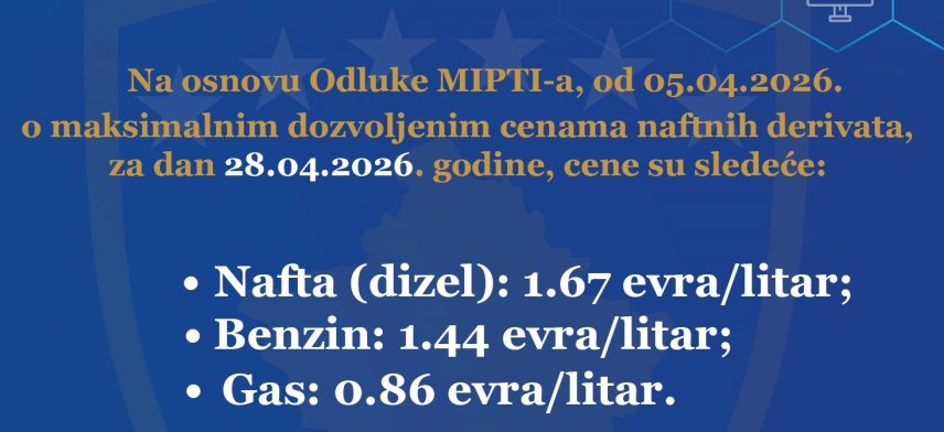 Cena dizela na Kosovu danas je skuplja za cent nego prethodna dva dana i iznosi 1,67 evra po litru saopštilo je Ministarstvo industrije, preduzetništva i trgovine Kosova. Cene benzina i gasa su ostale nepromenjene. Litar benzina danas košta 1,44 evra dok je cena gasa 0,86 evra.