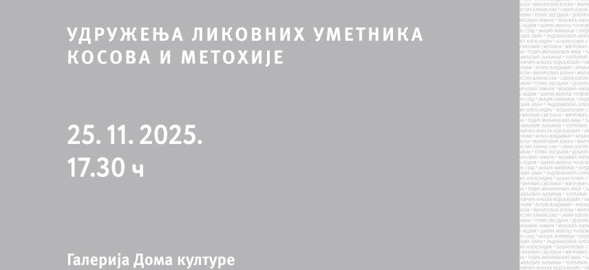 Udruženje likovnih umetnika Kosova i Metohije, Dom kulture „Stari Kolašin“ iz Zubinog Potoka i Fakultet umetnosti Univerziteta u Prištini, sa privremenim sedištem u Kosovskoj Mitrovici, organizuju svečano otvaranje izložbe „Novembarski salon“. Izložba će biti svečano otvorena u utorak, 25. novembra u 17.30h, u Galeriji Doma kulture „Stari Kolašin“ u Zubinom Potoku. Ovom izložbom predstavljaju se […]