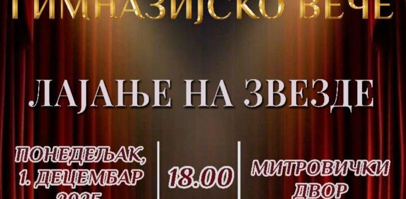 Gimnazija Kosovska Mitrovica obeležiće u ponedeljak 1. decembra 106 godina postojanja. Povodom Dana škole, učenici će, uz podršku profesora, izvesti predstavu “Lajanje na zvezde” Milovana Vitezovića. Predstava će biti odigrana u Mitrovačkom dvoru, u 18h.