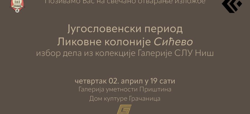 Galerija umetnosti Priština i Dom kulture „Gračanica“ organizuju izložbu „Jugoslovenski period Likovne kolonije Sićevo – izbor dela iz fonda Galerije SLU Niš“, autorke Emilije Bilić, više kustoskinje. Otvaranje izložbe planirano je za četvrtak, 2. april u 19 časova, u Galeriji Doma kulture „Gračanica“. Izložba predstavlja izbor slika i skulptura nastalih tokom jugoslovenskog perioda Likovne kolonije […]