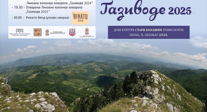 Likovna kolonija akvarela “Gazivode 2025” biće otvorena sutra (3. oktobar) u 19:30h u Domu kulture “Stari Kolašin” u Zubinom Potoku. Likovna kolonija akvarela, koja se po 21. put organizuje u Zubinom Potoku, predstavlja značajno organizatorsko i stvaralačko pregnuće i daje značajan doprinos kulturnom životu na prostoru Kosova i Metohije. Pre svečanog otvaranja ovogodišnje likovne kolonije, […]