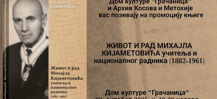 Promocija knjige “Život i rad Mihajla Kijametovića učitelja i nacionalnog radnika” sutra u Domu kulture Gračanica