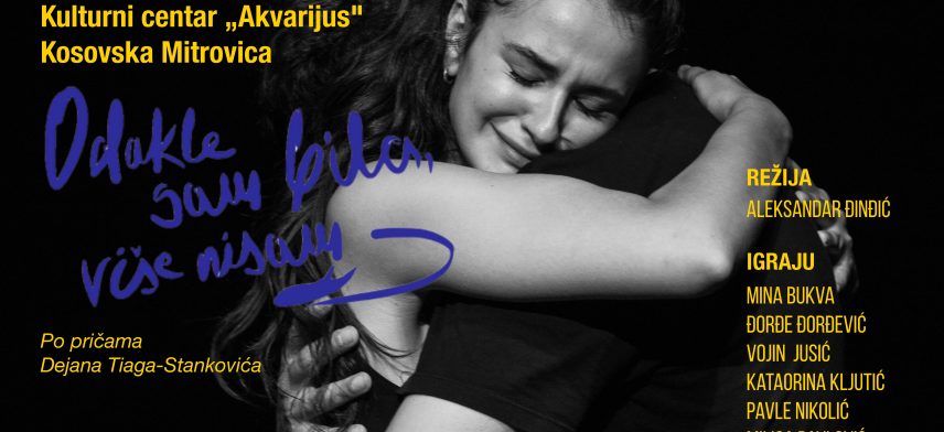 Predstava „Odakle sam bila, više nisam“ studenata treće godine glume na Fakultetu umetnosti biće odigrana u mitrovičkom Privatnom kulturnom centru „Akvarijus“ 6. aprila 2026. godine. Početak predstave zakazan je za 20.00. Igraju: Mina Bukva, Đorđe Đorđević, Vojin Jusić, Katarina Kljutić, Pavle Nikolić, Milica Pavlović, Ivana Poček, Petar Puzović. Gitara: Leonardo Bojović. Režija: Aleksandar Đinđić. Predstava […]