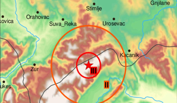 Zemljotres magnitude 2.5 jedinica Rihterove skale registrovan je sinoć u 23.09h u regionu mesta Štrpce, saopštio je Seizmološki zavod Srbije. Epicentar je bio devet kilometara jugozapadno od ovog mesta. Teorijski intenzitet u epicentru procenjen je na III-IV stepena Merkalijeve skale. Zemljotresi ovakvog intenziteta ne mogu izazvati oštećenja na objektima u epicentralnoj oblasti.