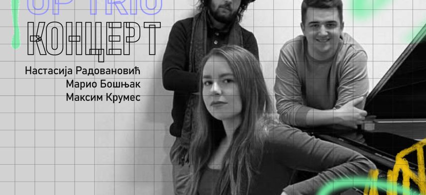 Koncert benda „Up trio“ u sastavu Nastasija Radovanović (klavir), Mario Bošnjak (bubnjevi), Maksim Krumes (kontrabas), održaće se u PKC „Akvarijus“ u petak 16. januara 2026. godine. Početak koncerta zakazan je za 20 časova. Ulaz je slobodan, ali su rezervacije stolova neophodne. Nastasija Radovanović je pijanistkinja iz Zvečana koja je nakon završene gimnazije i srednje muzičke […]